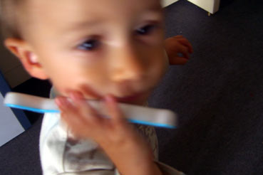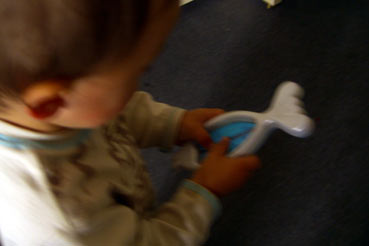 maman rigole parce que je joue au téléphone avec ce que je trouve : thermomètre de bain, petite voiture, boîte ronde, mais elle rigole moins quand je chippe le vrai téléphone ...