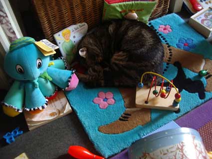 Le chat Utrillo est un coquin : il aime bien dormir dans mon petit coin à jouer