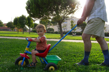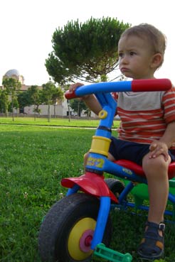 en attendant de voyager dans l'espace, je m'entraîne au vélo, sur l'herbe ferme