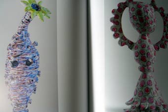| " Tout ce que je fais, je le fais en tant que peintre. Les objets, mes sculptures ou mes céramiques, je les crée en tant que peintre. Je suis définitivement amoureuse de la peinture, c'est mon regard de peintre qui est la source de cet ensemble. " | Marie DUCATE | |