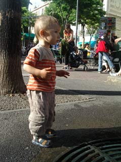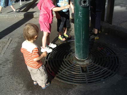 j'ai été intrigué par des enfants qui jouaient avec une fontaine