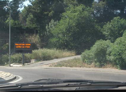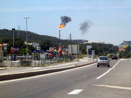 et puis papa a dû partir à Martigues, pour aller jouer lui aussi au même jeu mais dans une autre école ; sur la route il y avait beaucoup de fumée noire et de mauvaises odeurs, et de temps en temps un panneau rappelait de ne pas rouler vite parce qu'il y avait de la pollution il y a des gens culottés, pourquoi c'est pas eux qui lèvent le pied, a dit papa ! |
